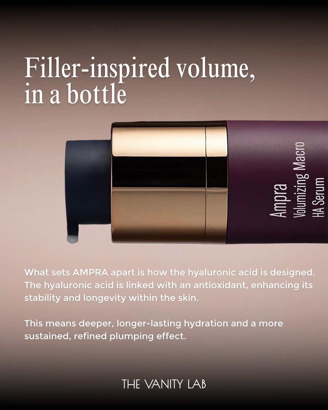 Ampra is a concentrated serum designed to restore volume and definition to sagging skin. While most hyaluronic acid (HA) products only hydrate the surface, Ampra uses HYAsync™ technology: a bond of Alpha-Lipoic Acid and HA to help the skin retain its own volume and resist breakdown.